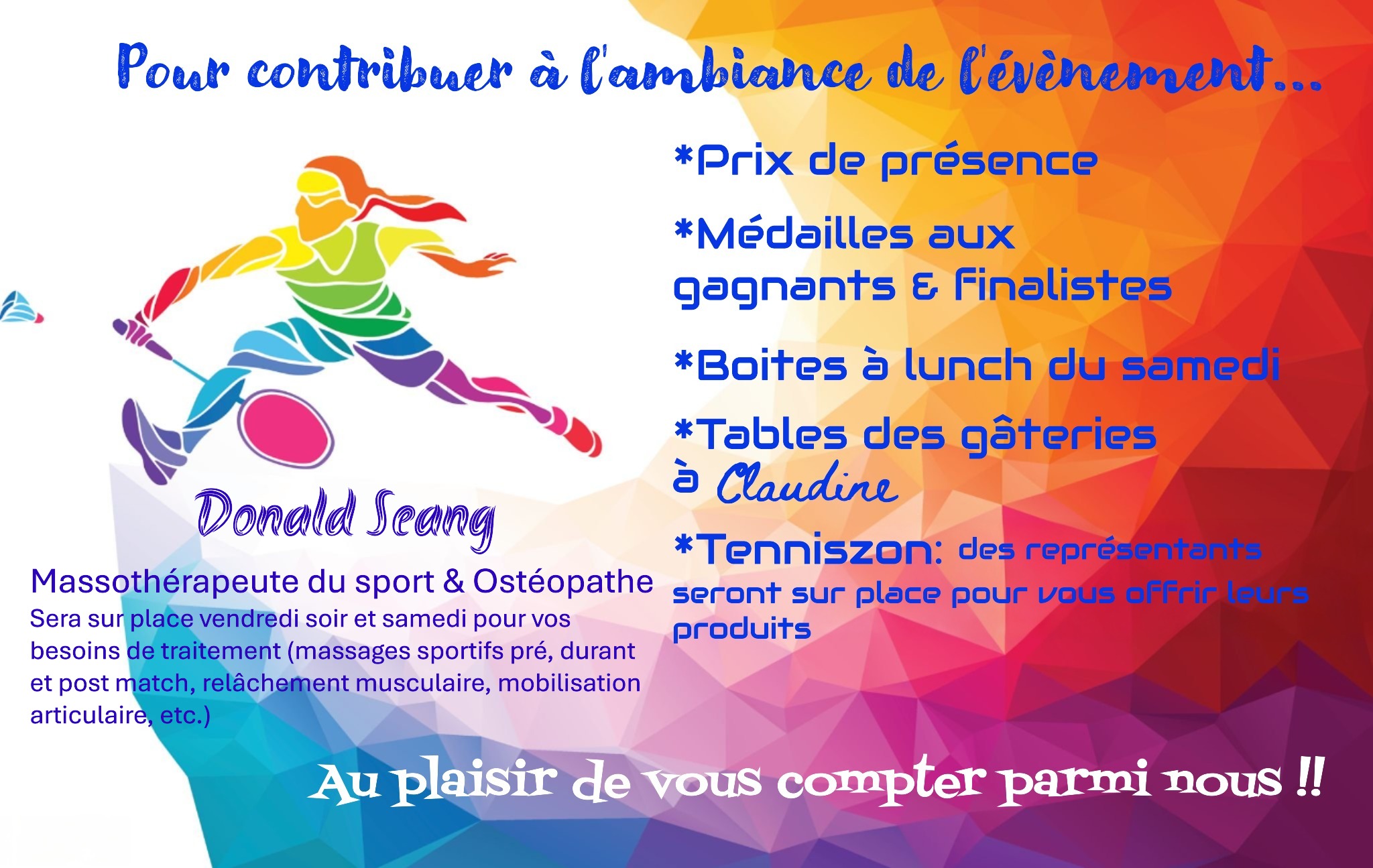 Nos activités sont pour les joueurs de tous les calibres; de débutant à avancé.